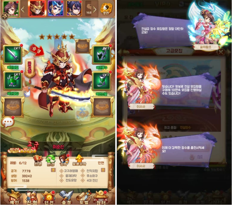 황진이, 서시, 초선, 양옥환 총 4명의 전설 장수 중에서 1명을 플레이어가 직접 선택하고 획득할 수 있는 혜택도 제공되기 때문에 기본적인 스펙을 갖추기 편하구요. 본인이 어떤 진영 위주로 파티를 편성할 것인지를 잘 고려해서 장수를 선택하는 것이 좋지 않을까 생각됩니다.