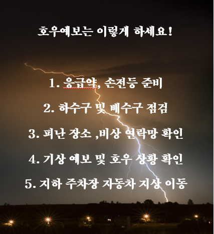 집 주변 하수구, 아파트 배수구 등에 이물질이 쌓이지 않았는지 사전 점검하고,