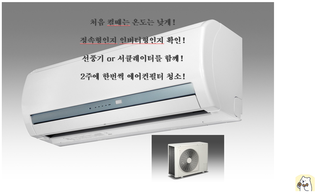 안녕하세요, 잡학사전 곰돌이입니다. 어느덧 최고기온이 30도를 넘어서고 있네요...ㅠㅠ 아직 7월이 오지도 않았는데 이정도면 올 여름 무더위는 어떻게 해야 할까요... 이번 포스팅에서는 무더운 여름을 이겨내기위한 필수 아이템, 에어컨... 하지만 전기요금 폭탄이 무서운 본인... 더위는 이겨내고 전기요금 걱정은 덜어줄 전기요금 절약 꿀팁을 전해드립니다.