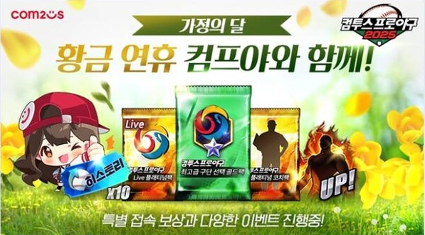 안녕하세요, 곰돌이입니다!!!! 컴투스에서 5월 가정의 달을 맞이해 '컴투스 프로야구' 시리즈에서 특별 이벤트를 실시합니다. 이번 이벤트는 야구 게임 명가 컴투스의 인기 타이틀 3종인 컴투스 프로야구 2025, 컴투스 프로야구 V25, 컴투스 프로야구 for 매니저 LIVE 2025에서 황금 연휴 기간을 포함한 5우러 한 달 동안 진행합니다. 그럼 모두 고고싱~~~~~~